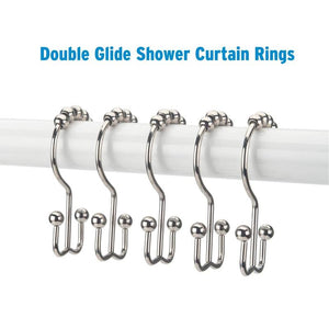 Double hooks design - The double roller glide shower curtain hooks are strong enough to hold up shower curtain and shower liner.