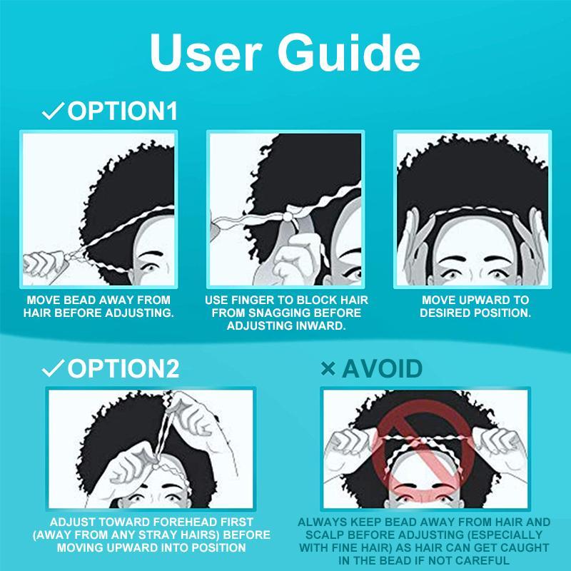 ADJUSTABLE – Our design allows you to get the Perfect Fit every time. In order to reduce snagging while adjusting, always stretch band so bead is AWAY from hair and scalp first. While stretched, our cushions disappear allowing the bead to move freely.