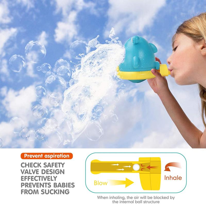 - Portable and Anti-choke Design - The portable design solves the problem that the suction cup does not stick well of similar bath toys. The upgraded anti-choke design can prevent our kids from choking when they blow bubbles in their mouths.