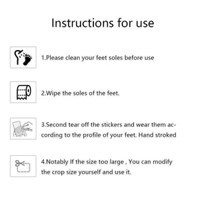 • NOTICE - Please make sure the feet are clean and dry without no wound before applying or they will fell off the feet very soon.If there is a wound in the foot,do not use it