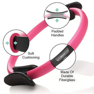 • CUSHIONED RUBBER: Our Pilates equipment let the Soft and Sturdy Foam-padded handles Comfortably mold to your body. These ergonomic molded no slip handles provide comfort for ankles, legs or arms on both the inside and outside of the ring. Our fitness circle are also perfect for travel because they are almost flat, lightweight and do not take up a lot of volume.