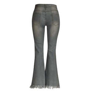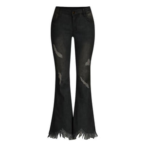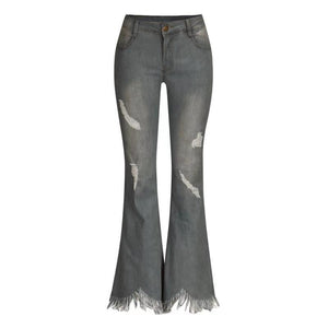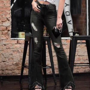 1 Pair of Denim High-waist Ripped Trousers