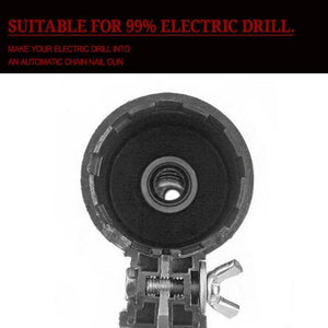- Electric Drill Chain Nail Gun Adapter for electric drill woodworking tool, make your electric drill into an automatic chain nail gun, this technical innovation will save us much time and labor.