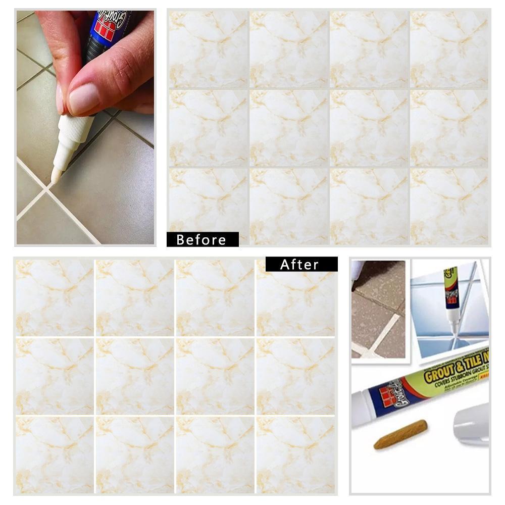 This Grout & Tile Marker Repair Pen ink formula is water based and covers over stained areas that are caused by everyday mould and dirt build up on grout between tiles. Not only does this product restore the grout’s look it also helps prevent further moulding with its anti-bacterial formulation.