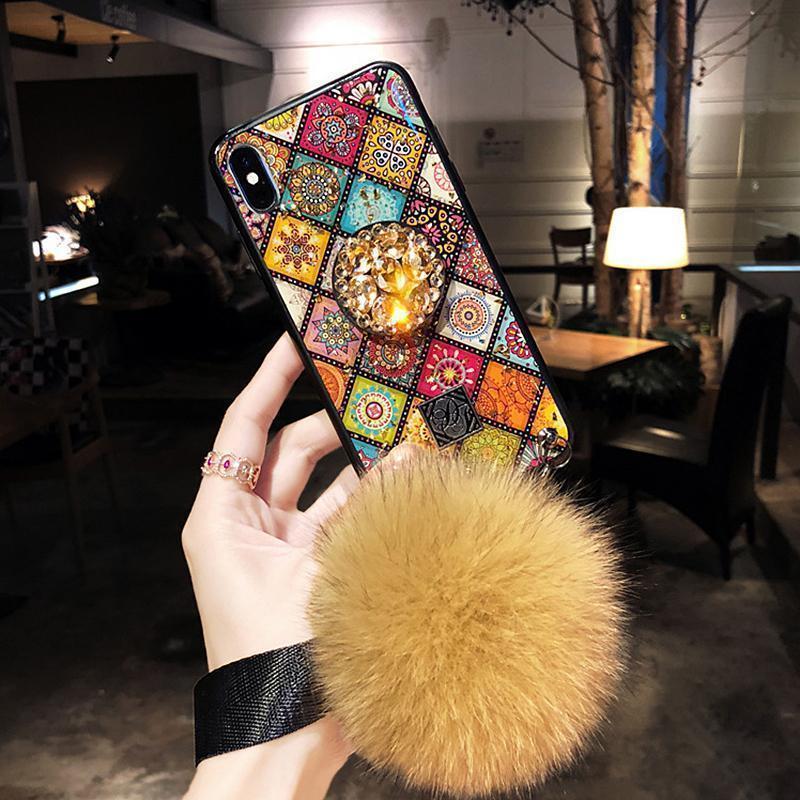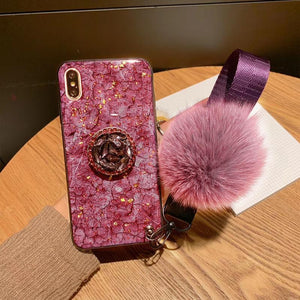 Hair Ball Airbag Bracket Holder Diamond iPhone Case