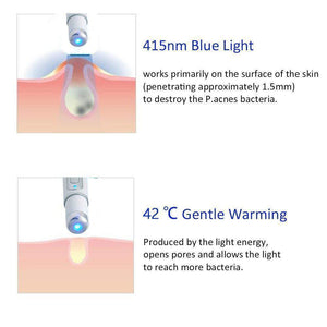 - Using the specific 415nm blue light in the visible light to kill the bacteria in the skin and pores