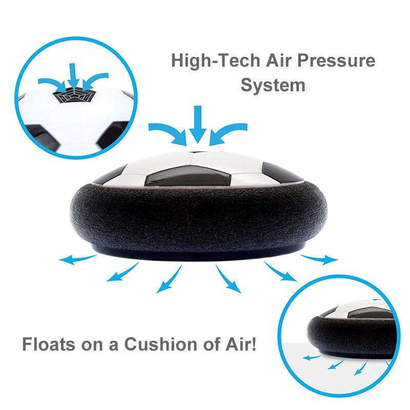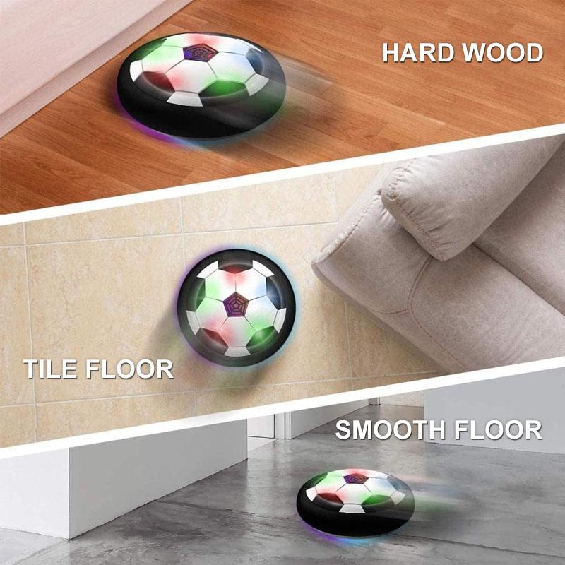 The light up soccer ball floats on it's own air cushion, which helps it glide and rebound easily. The soft & flexible foam edging can not only protect the kids from getting hurt but also to protect your furniture and others things from damaging.