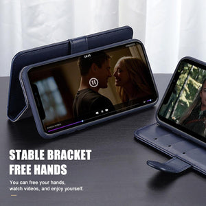 Built in stepless stand while folding into a kickstand position to watch videos hands free, embedded magnetic clasp secure lock the case, also the front cover can magnetize to the back cover when completely flipped open.