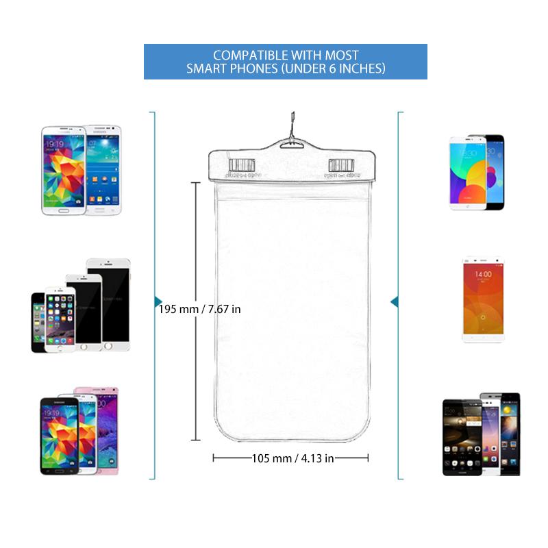 Super Waterproof: Fully submersible and waterproof, IPX8 certificated to 100 feet (30 meters).The water resistant phone cases provides protection for ID,credit cards,cash,phones,and keys from water damage when swimming, rafting,boating,snowing and skiing.