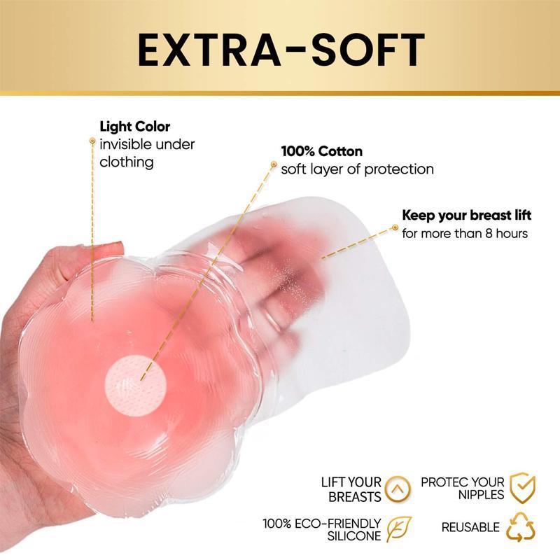 • Its eco-friendly soft silicone adhesive material with cotton nipple cover conforms to your figure and stays in place all day, even for sensitive skin