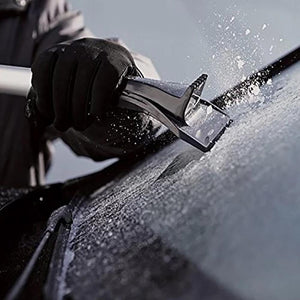 QUICKLY BREAK AND SCRAPE AWAY ICE The car snow shovel made of high-quality ABS, low-temperature resistance, sturdy and durable, not easy to break, non-scratch jaws break through the ice surface quickly, then the flat head gets underneath to scrape away the rest.