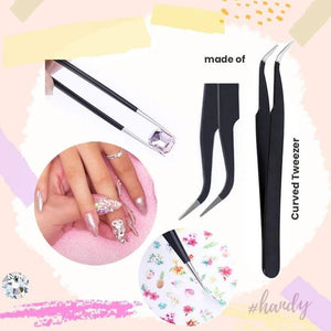 CURVED TWEEZERS: Designed to let you work on your nail art decorations with the greatest of ease and apply nail art accessories with pinpoint precision