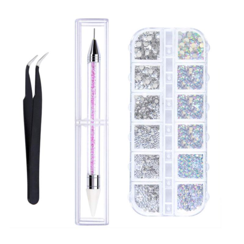 Packet: Nail Rhinestone Kit Set (1 x Tweezer, 1 Box of Rhinestones, 1 x Dual-ended dotting Pen)