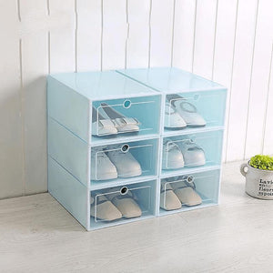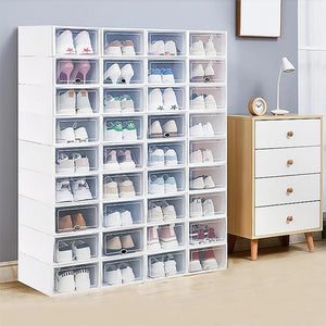 Our shoe storage boxes have drop front doors so you can easily access your shoes even when units are stacked or on a high shelf. The clear front and sides allow you to see what's inside at a glance