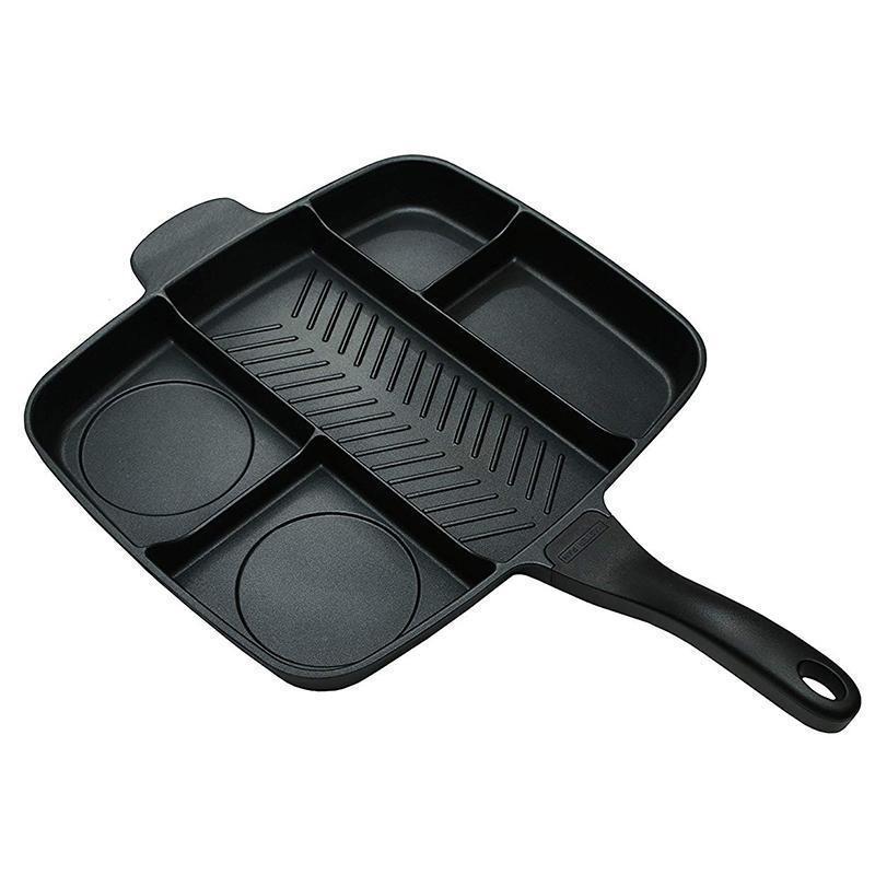 This is a skillet pan that has 5 separate compartments so you can cook every part of your meal using just one pan!