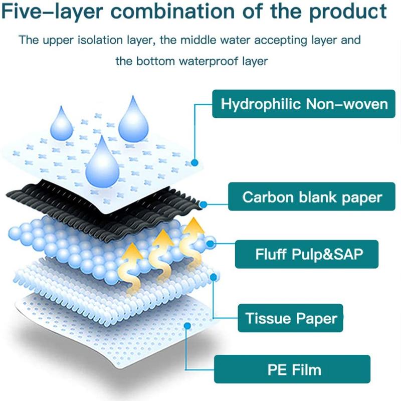 • Material: Hydrophilic non-woven fabric, wood pulp cotton, polymer, activated carbon paper, PE cast film