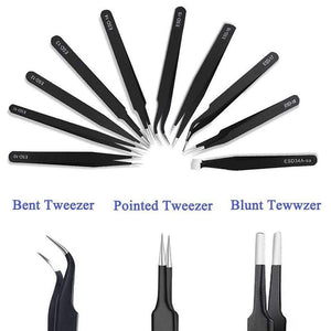 A 10 pack stainless steel tweezer set is antic-static and non-magnetic tweezers designed for multiple-precision jobs for both women and men. Excellent tool bag, easy to take out and store with no hassle.