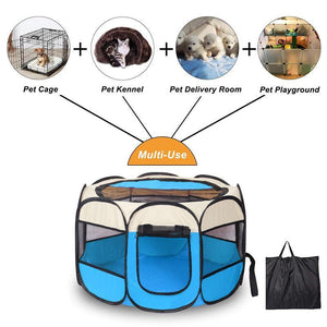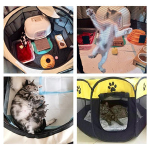 This pop-up playpen is suitable for indoor and outdoor, is lightweight, portable and foldable. It can serve as a cage or kennel for pets such as for exercise or if you need to secure your pets during camping, fishing, picnic, tailgating events, and other outdoor activities.