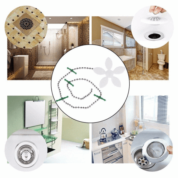 【Direction for Use】: Open the package and stretch the chain, then put it into the drain, the flower part just stuck outside the drain. After a certain period of time, you can take out the collected hair and use it again.