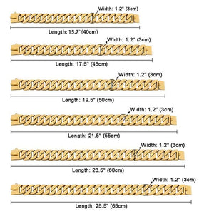 A cool dog should have a cool dog collar!Perfect as a pitbull collar, our dog chain is strong, stylish, and comfortable. The Stainless Steel Dog Chain Collar is made of ultra-strong 316L Stainless Steel, which will NEVER rust or irritate your dog's skin.