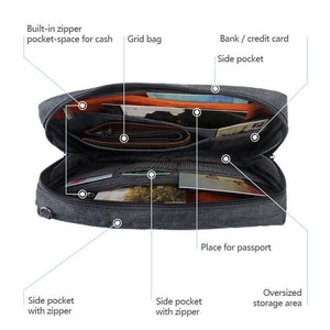 These bespoke, unique and stylish travel bags can easily store your passport, iPhone, credit cards, tickets, notes, USB, cash, pens and more.
