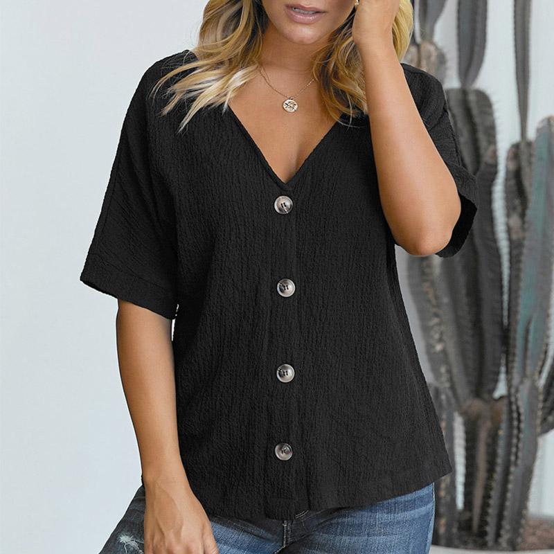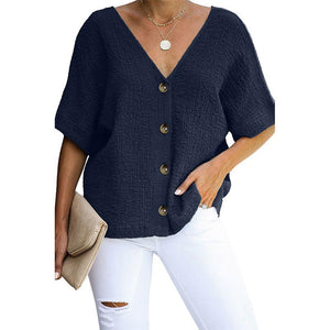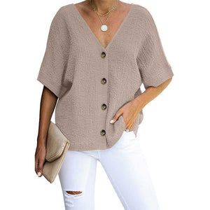 1 * V-neck Short sleeve Loose Shirt