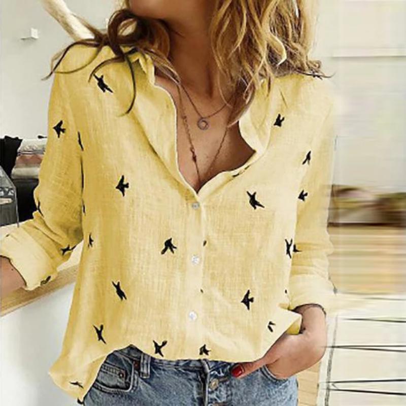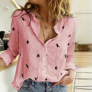 Women Floral Print Sexy Turn-down Collar Button Blouse