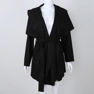 Women Sexy V Neck Belt Lace-up Solid Casual Overcoats