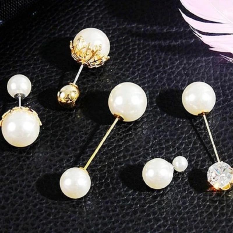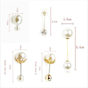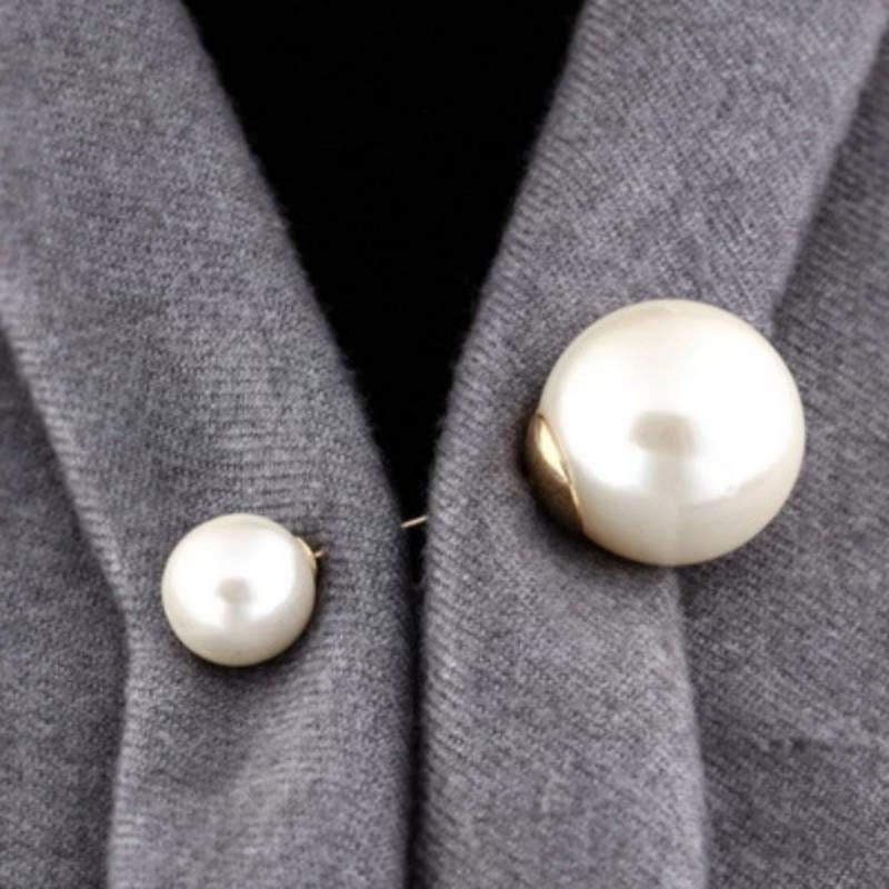 Women Vintage Pins Double Head Simulation Pearl Big Brooches, 5PCs