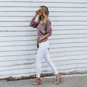 Women's Casual Cross Backless Long Batwing Sleeve Sweater